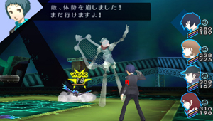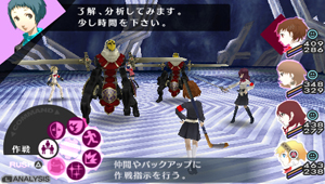 バトルでは、「ペルソナ4」 で好評だったシステムをフィードバックし、更に改良。仲間への直接指示が可能になり、「かばう」・「くいしばる」・「合体攻撃」 といった攻撃面の他、ステータス画面から仲間の装備が変更できたりと、