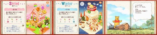 さらに、上手にお料理ができるともらえるごほうびアイテムで、自分だけの「お菓子のおうち」を作ることも!コンプリートすると、いろんなサプライズが・・・。また、ソフトを立ち上げるたびに話しかけてくれるプーさんとのやりとりにも、心癒されます。