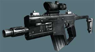 ユニークなルックスを持ち、多目的に使用できるレーザーサイト付きサブマシンガン。