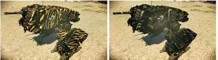 左側の「タイガー」迷彩は攻撃力が、右側の「インパクト」迷彩は旋回能力をアップさせるのだ!君よ、来たれ!