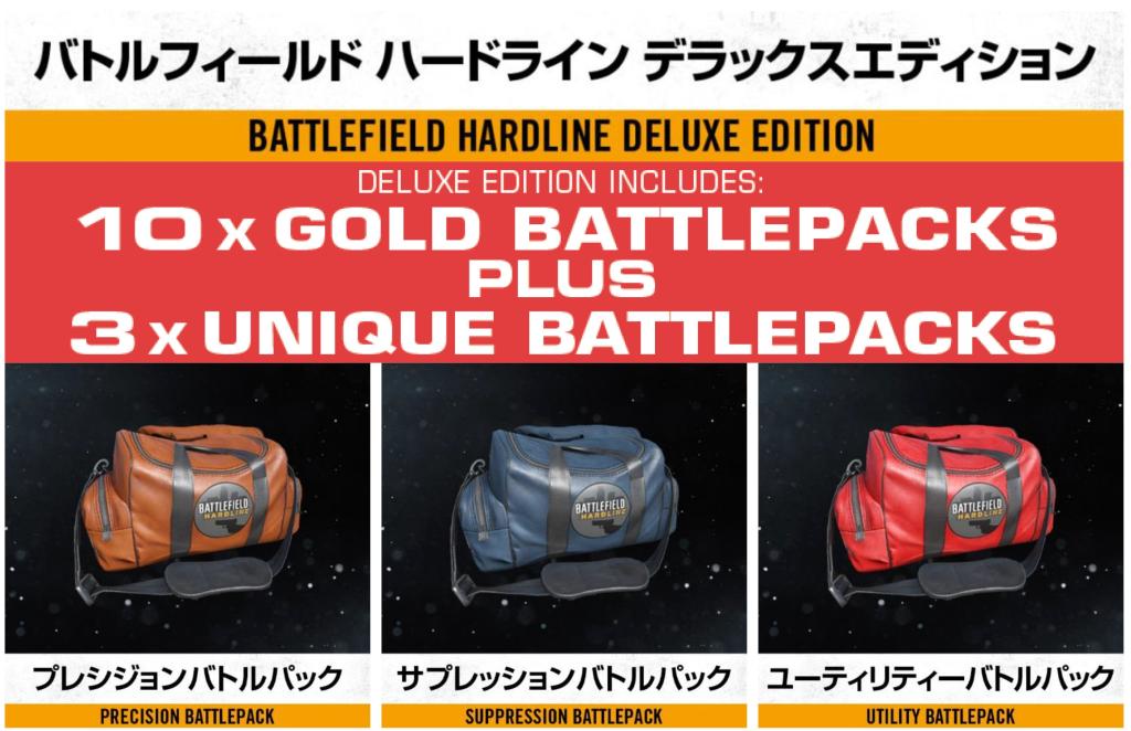 『バトルフィールド ハードライン』をより楽しみたいプレイヤーには、デラックス・エディションがお勧めです。 デラックス版限定のバトルパックに留まらず、10週間連続でゴールド バトルパックを入手可能。 武器、装備、カスタマイズオプションなどを10週間連続でゲットしよう!
