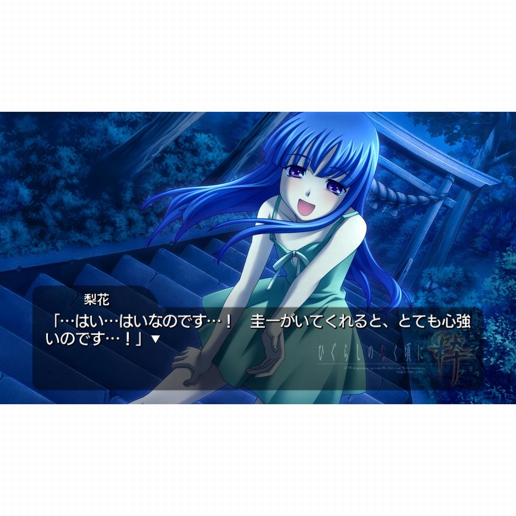 イベントCG200枚以上、テキスト量ライトノベル30冊分の圧倒的なボリュームに加え、本編はもちろん、サブシナリオまで完全フルボイスを実装。演出面を見直し、臨場感を強化。さらにPS3とPSVitaのクロスセーブが可能となり、家の中でも外出先でもプレイが可能。新規の追加として、竜騎士07氏書き下ろしのおまけシナリオ「羞晒し編」をゲーム化し、各キャラの水着CGを追加。自身の「ひぐらし」知識を問う「読飛し編」を新たに搭載し、出題されるクイズの正解率に応じて、好きなシナリオを自由にプレイ出来ます。また楽曲は歴代の「ひぐらし」シリーズの主題歌・挿入歌を全収録し、新曲は志倉千代丸氏書き下ろしの2曲に加え、 原作のdai氏作曲の1曲を追加